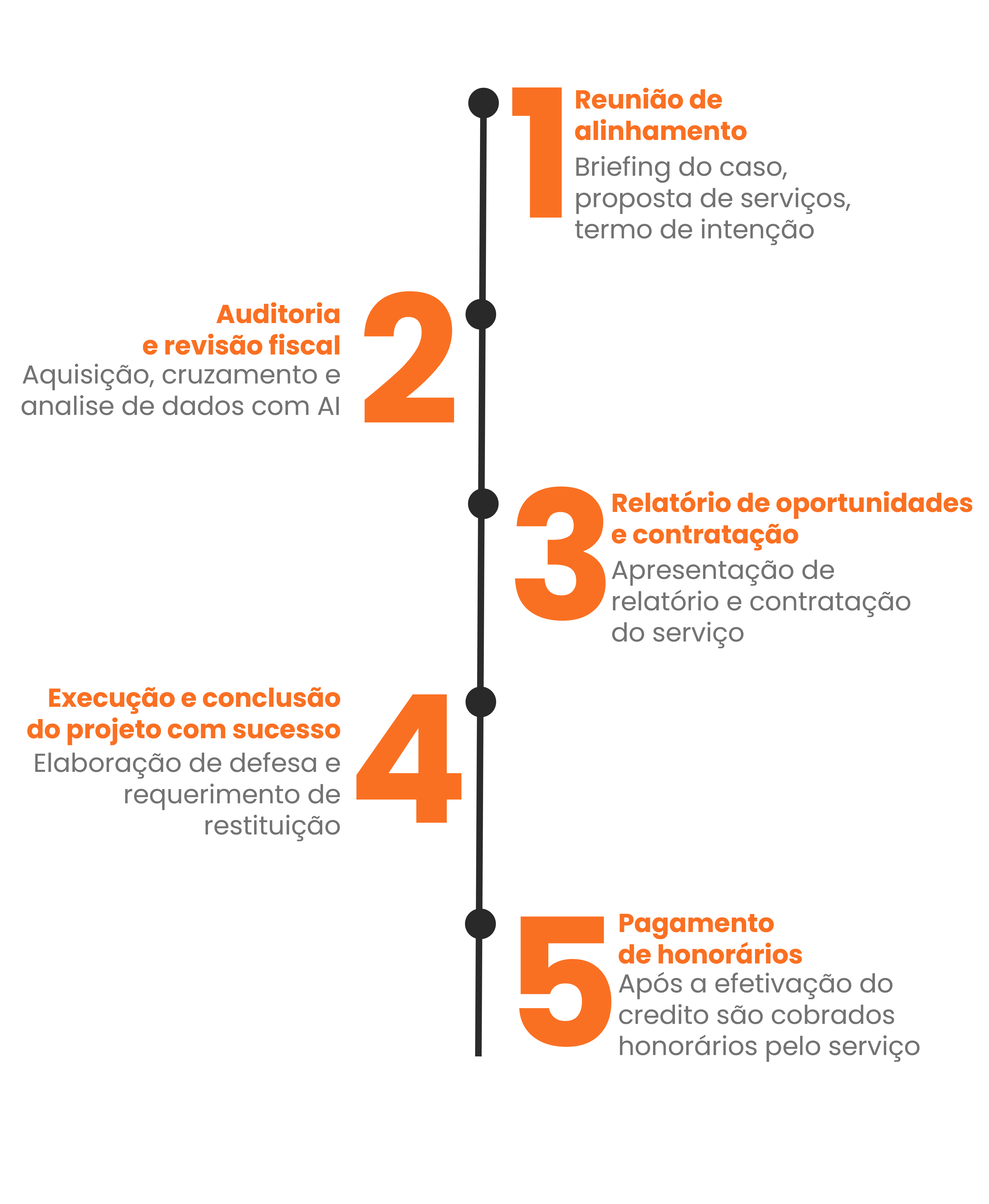 Além disso, nossa especialização e eficiência são comprovadas pela agilidade na Recuperação de Créditos Tributários (RCT), geralmente em média de 60 dias. Nosso compromisso com o sucesso do projeto e benefícios para o cliente se refletem em nossa remuneração, que ocorre apenas após o recebimento do crédito pelo cliente, sem risco ou custos iniciais.